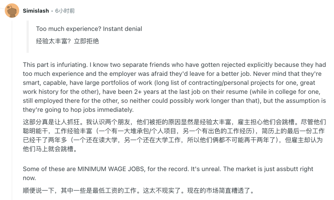 最离谱的还得是这个因经验太丰富被拒,主要是由于雇主怕他们能力太强跳槽。