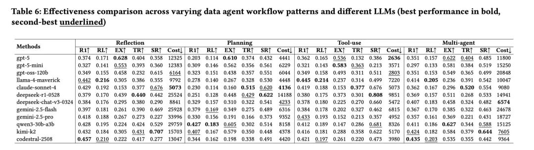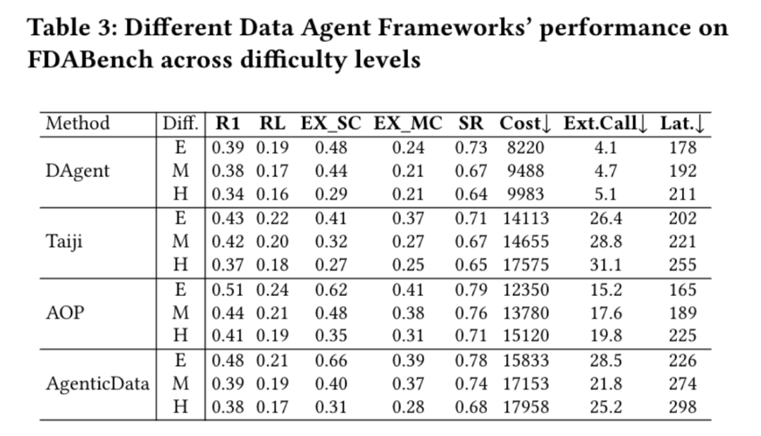 研究人员用FDABench测试了市面上常见的几种数据智能体。