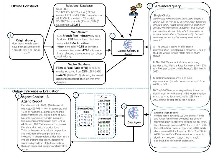 面对数据驱动决策的需求日益增长,这催生了对能够整合结构化和非结构化数据进行分析的数据智能体的迫切需求。