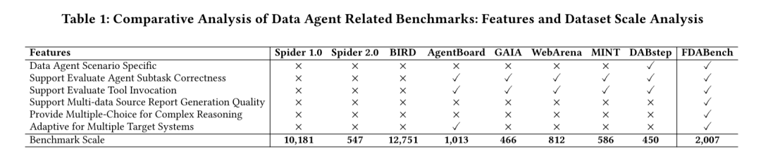 为应对这些挑战,团队提出了FDABench,这是首个专门为评估多源数据分析场景中的智能体而设计的数据智能体基准。