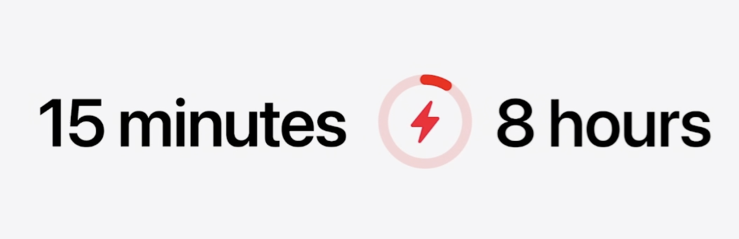 SE 3的电池支持18小时续航,并且在SE系列中首次支持快充,充电速度是之前的2倍,充15分钟就能用8小时。