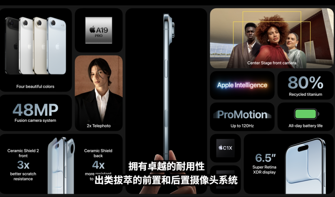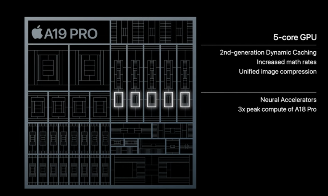 而大模型时代,即使保守如苹果,也在整场发布会中不停地强调Apple Intelligence。A19升级的CPU、配备神经网络加速器的GPU,以及神经引擎,总结起来最主要的目的就是: