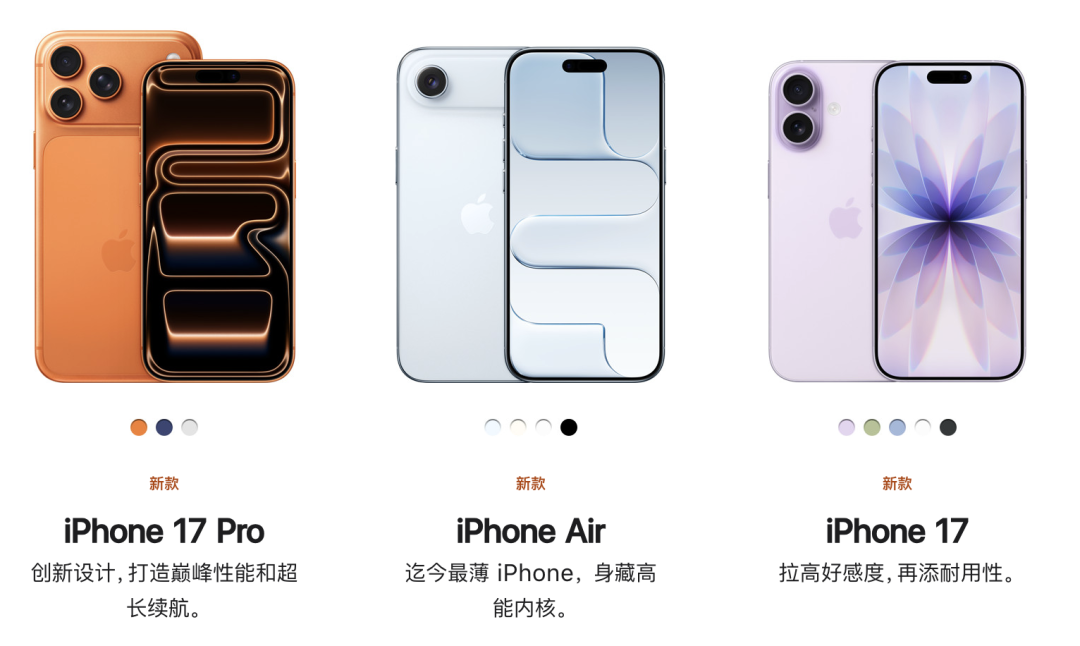 苹果中国网站显示,17 Air在国内的预购和正式发售,与国行其他型号同步。