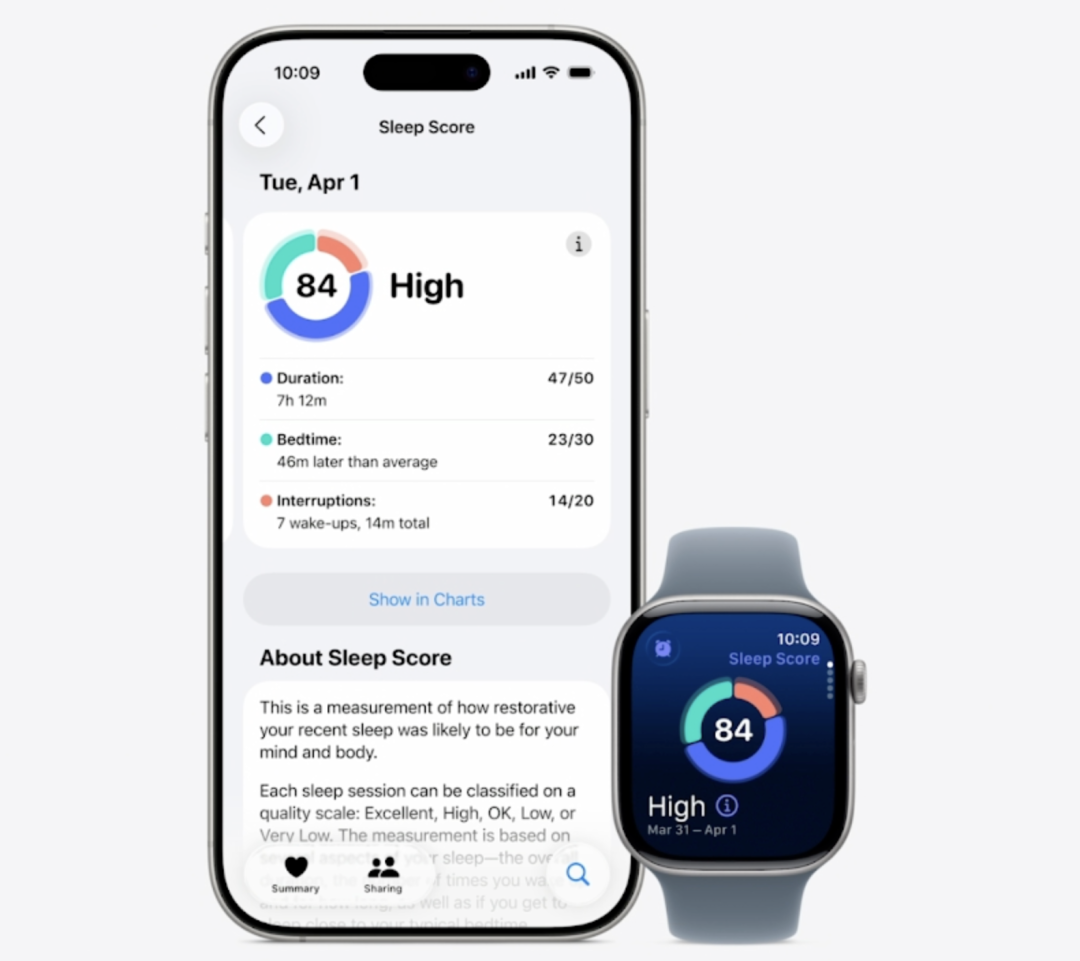 另一项健康功能则是睡眠质量评分,Series 11会对睡眠时长、就寝规律、清醒次数等指标进行分析并打分,然后提供改善睡眠指导。