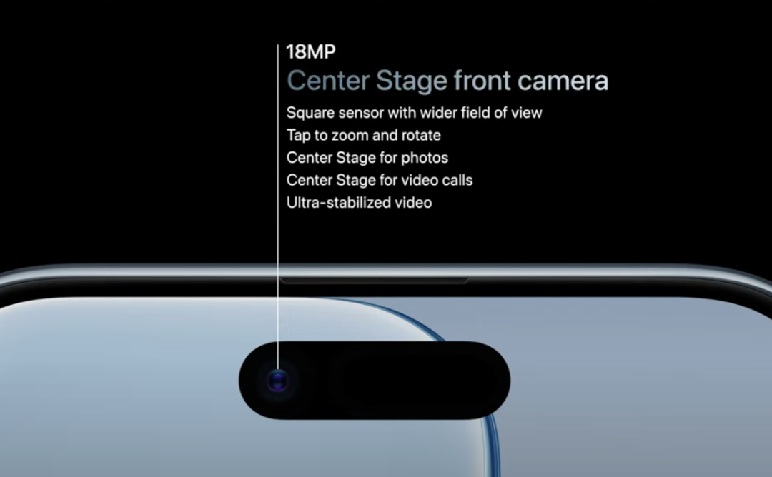 Center Stage前置摄像头的传感器几乎是前代产品的2倍大,并且是个正方形,能实现更自由的构图。