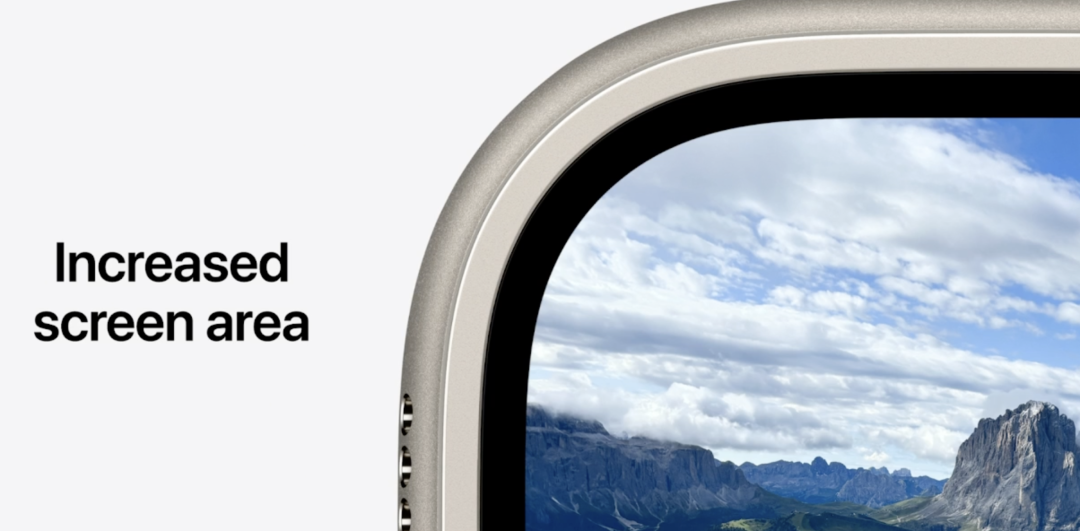 此外屏幕也进行了升级,采用OLED和LTPO3技术,侧面看上去亮度更高, 边框也变得更窄,拥有Apple Watch目前最大的屏幕,但无需更换保护壳尺寸。