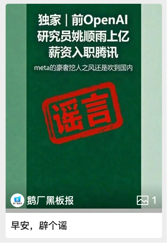 有爆料说“姚顺雨上亿薪资入职腾讯”,但被腾讯官方对外辟谣否认了。