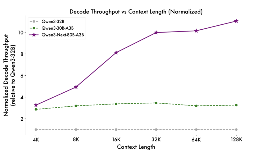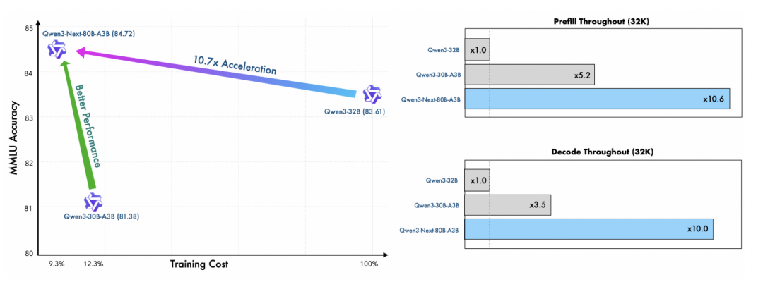不仅如此,得益于创新的混合模型架构,Qwen3-Next在推理效率上也表现突出。