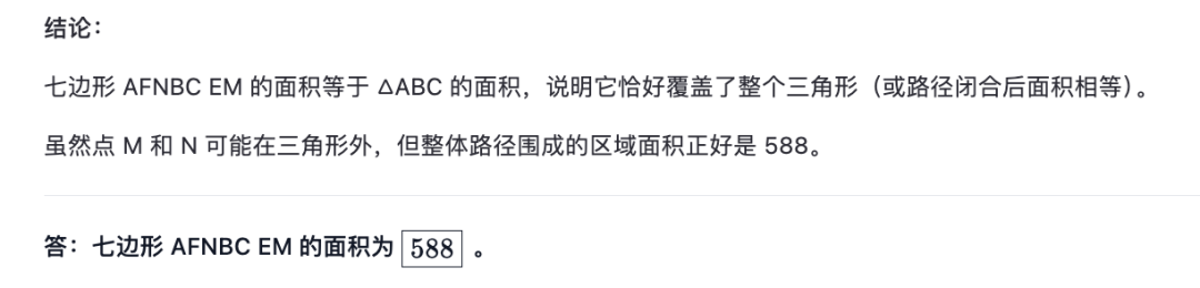 几乎瞬间,模型就开始飞快地列出了详细解题思路和计算过程,最终得到的答案“588”与AIME标准答案完全吻合。