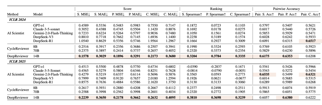 基于数据集DeepReview-13K,研究人员训练了DeepReviewer-14B模型,其在使用更少tokens的情况下,性能优于CycleReviewer-70B。