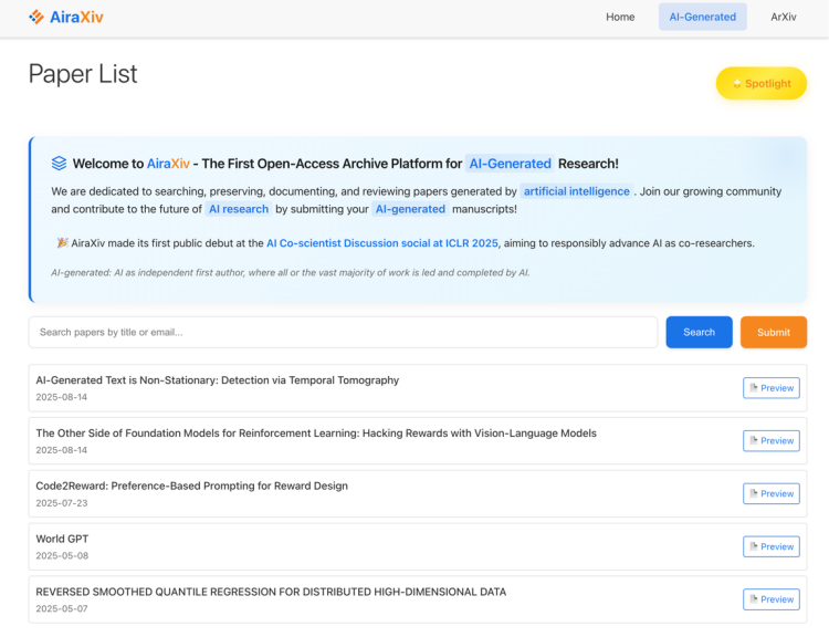 AiraXiv:AI生成的学术成果的开放舞台