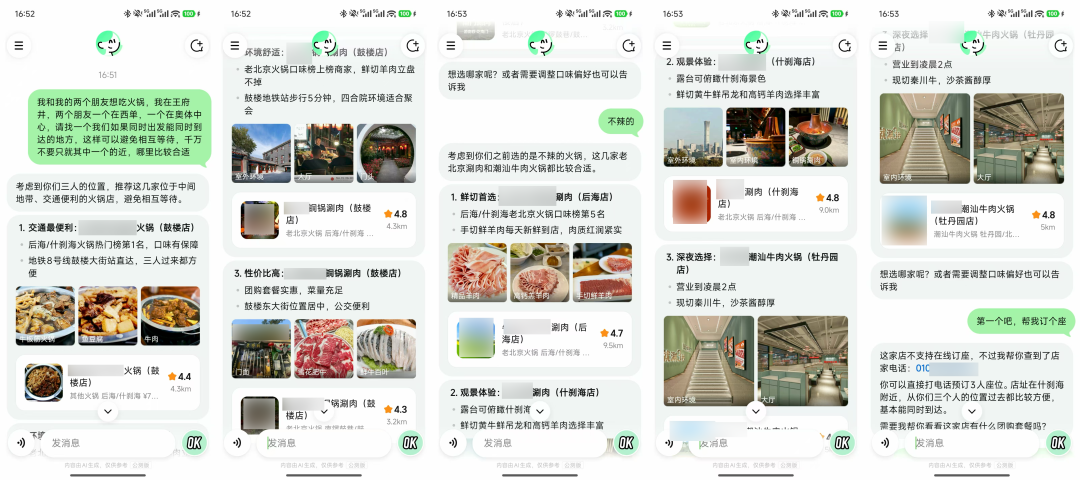 结果小美还真的找到了符合要求的店铺,然后我们顺势让小美帮忙订座。