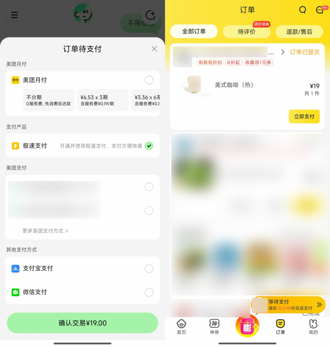 以防万一,我们手动打开美团外卖检查了一下,相关的订单确实已经出现,当然实际使用小美的时候不需要这步确认。