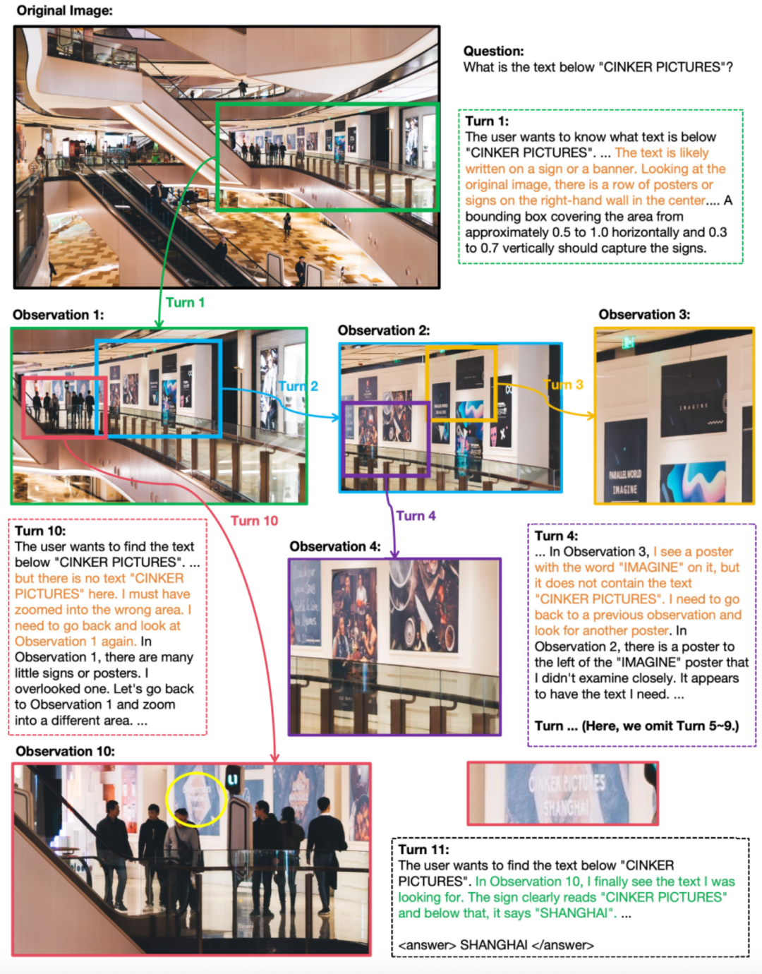 并且,与先前局限于1-2轮对话的视觉语言模型(VLM)不同,它在训练限制轮数只有6轮的情况下,测试阶段能将思考轮数扩展到数十轮。