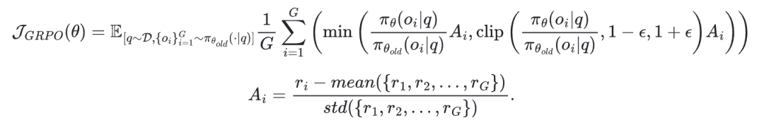 研究团队通过奖励归一化计算优势值【A】,并在小批量数据上使用GRPO优化目标更新策略。