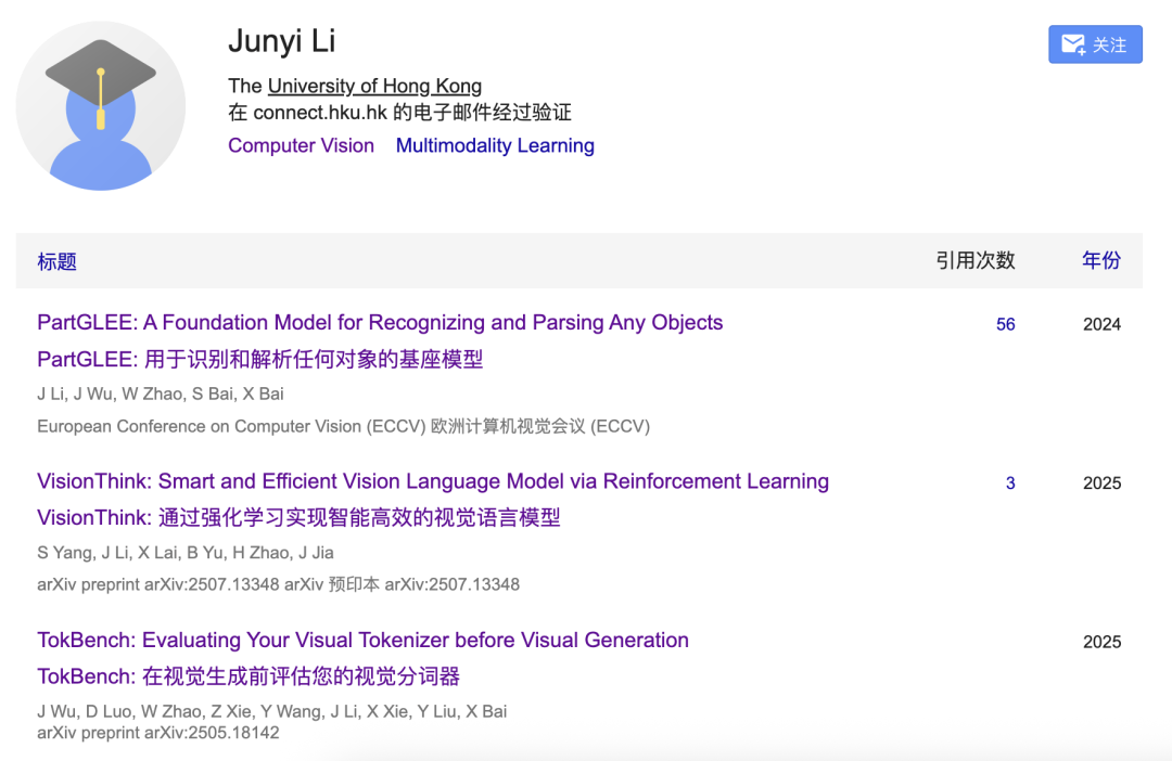 另一位作者,Junyi Li公开资料不多,目前是香港大学的博士,参与字节研究工作,曾就读于华中科技大学。