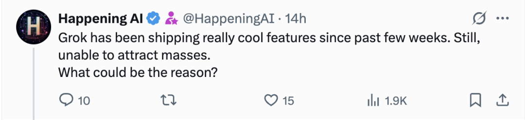 不过,就像网友说的,Grok这几周一直在搞一些超酷的新功能,可就是没火起来,这是为啥呢?