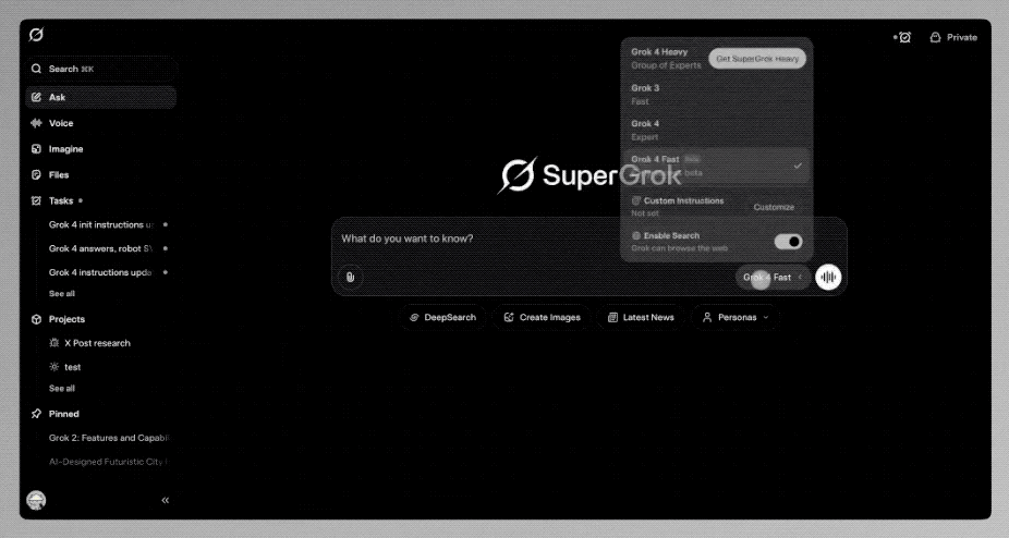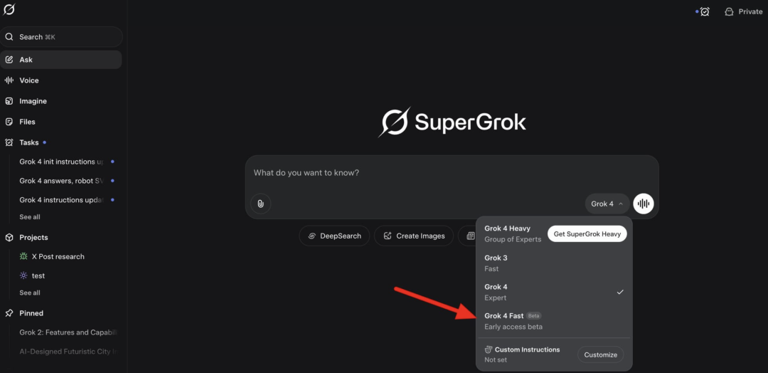 最后,Grok 4 Fast已上线,用户可以在浏览器界面将模型设置为Grok 4 Fast来访问。