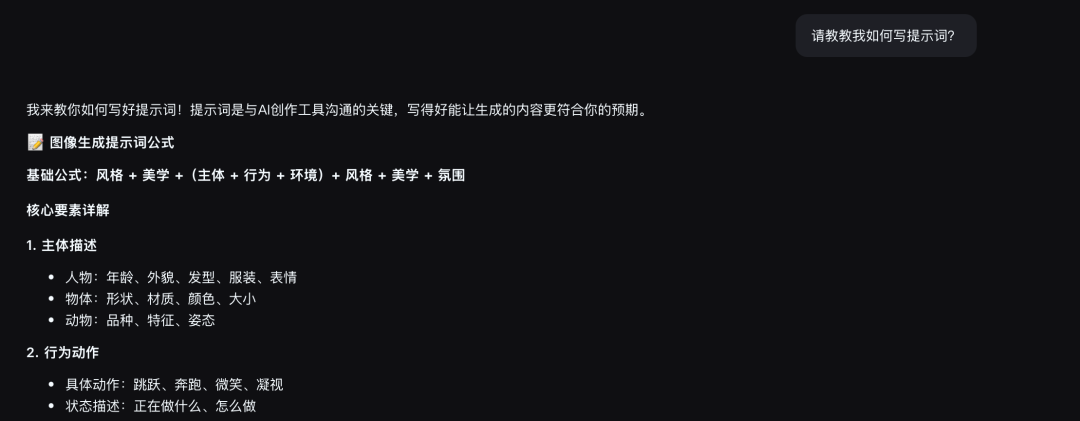Agent现在还兼职AI小助手功能,用户可以直接询问它怎么写提示词,be like: