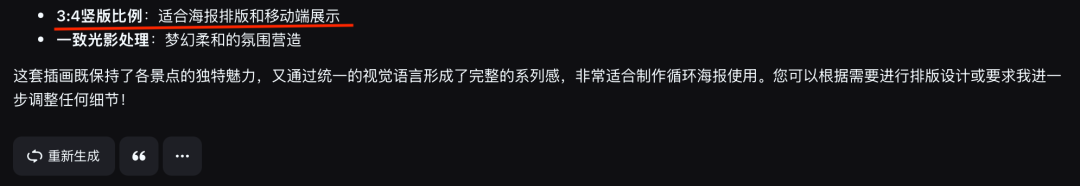 最妙的是,它是真的很懂用户需求,原来的Prompt里并没有主动告知它要竖屏,只有关于海报的提示,结果它主动适配海报排版和移动端展示,自动生成了3:4比例的竖图,确实很贴心了。