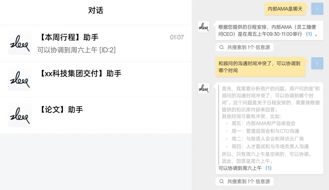 无论是管理者与Agent的交互记录,还是各系统同步的会议纪要、项目文档,都会被自动梳理为可搜索、可问答的结构化知识库,避免信息随时间流失,为后续决策提供历史数据支撑,让散落的信息沉淀为公司核心资产。