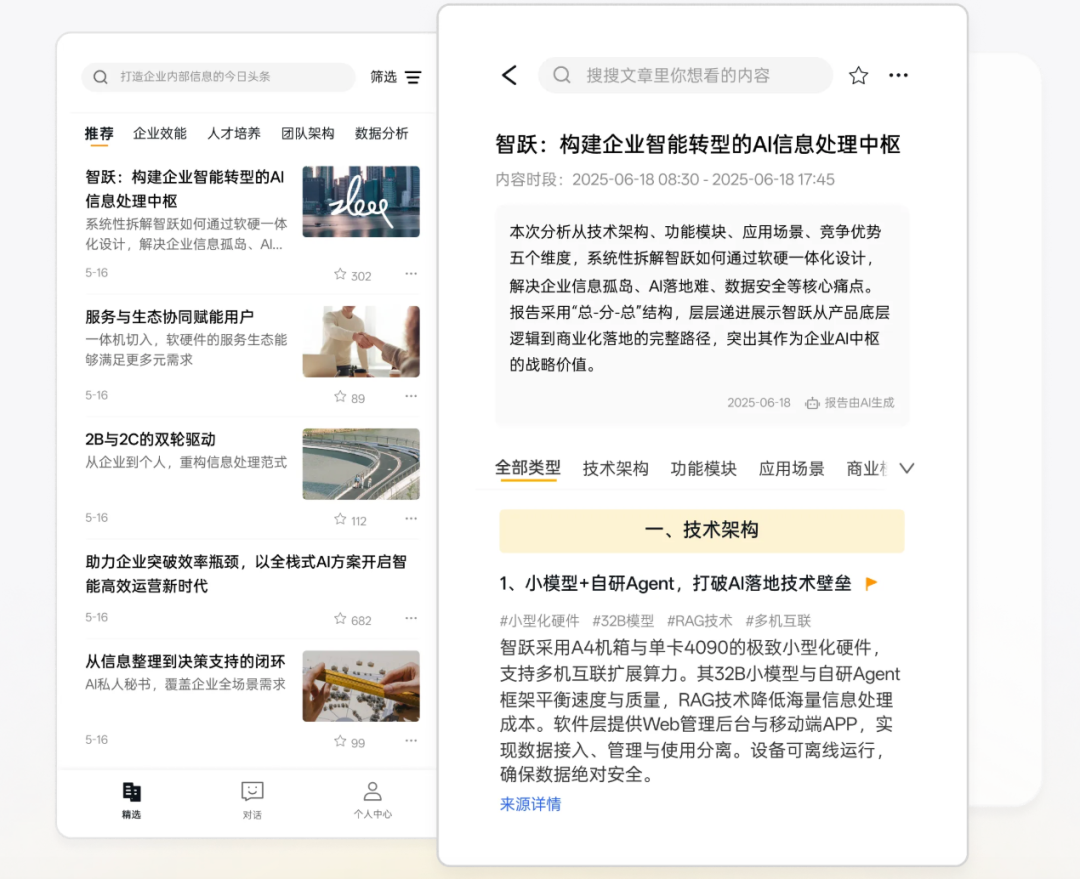 而智跃Agent一体机则是插电后打开App,就能让CEO轻松实现全局信息把控。