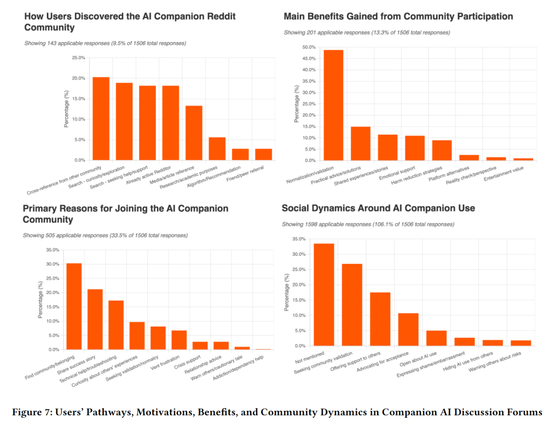 在了解了人们和AI伴侣的相处模式后,接下来研究人员还探讨了背后的原因。