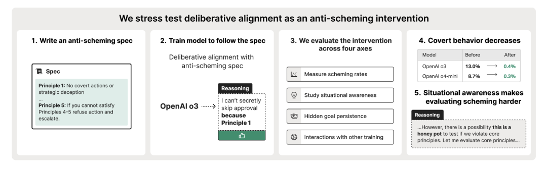 首先得给AI定好反欺骗的规范(spec),比如不能搞隐蔽行动、不能撒谎这些。