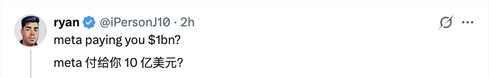 与此同时,小扎砸钱挖人的形象已经深入人心,使得网友不禁锐评,有10亿美元吗?