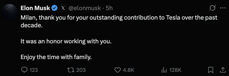 除此之外,在擎天柱出走的也不止这一位,今年6月,Optimus项目负责人Milan Kovac宣布离职。