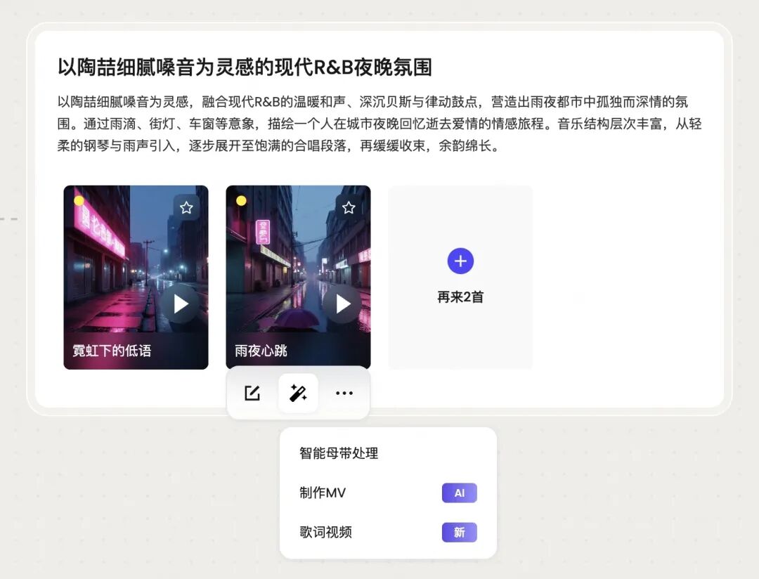 不仅能写歌,还集成了MV制作、歌词视频、母带处理、音轨分离等功能。