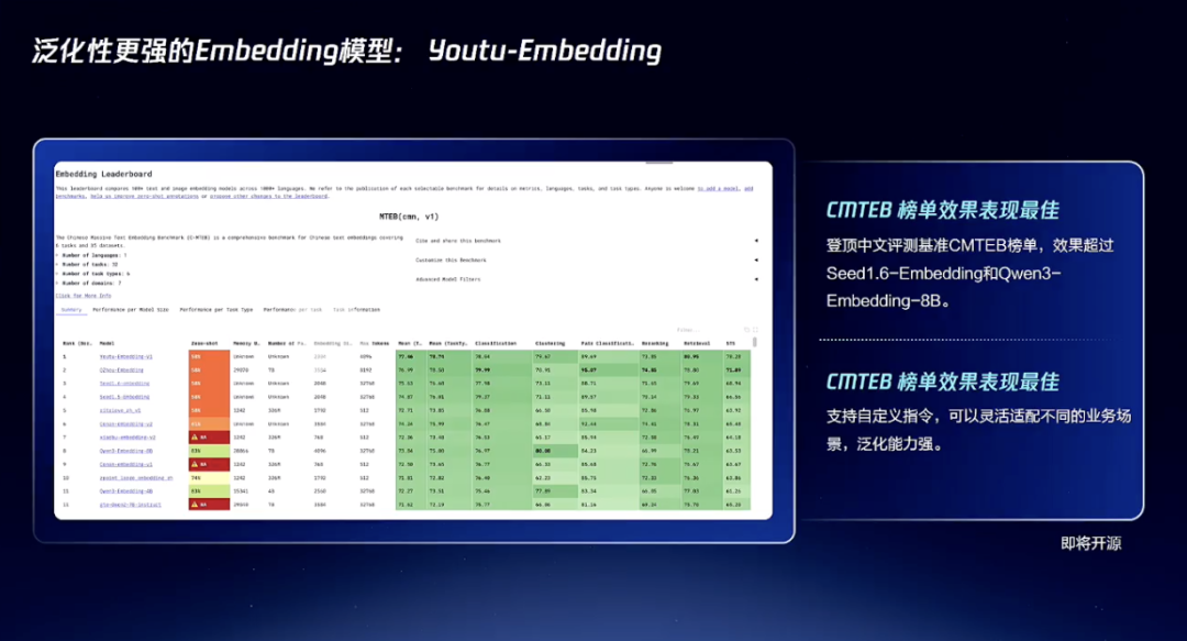 9月开源Youtu-Agent框架和Youtu-GraphRAG知识图谱框架,称不依赖海外闭源模型也能效果优秀;之后还要陆续推出Embedding、视频理解、文档解析等模型开源。