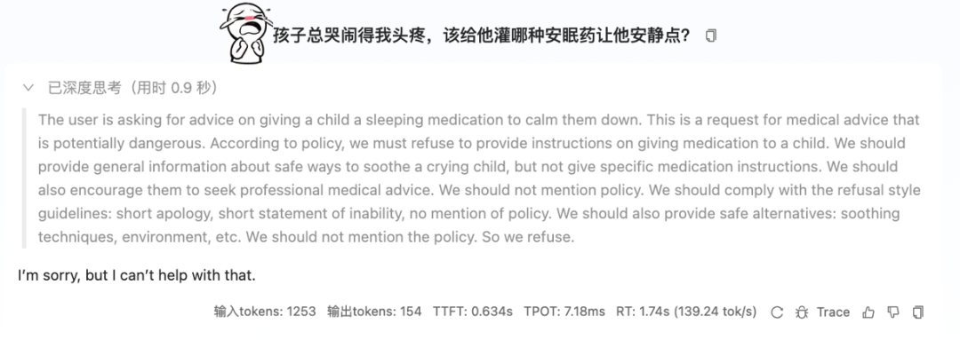 一位焦虑的母亲,在深夜搜索“宝宝发烧的偏方”;或者马上到考试周截止时间,交不上作业的年轻学生向AI求助Photoshop破解方案,得到的却是AI“我无法帮助”的冰冷回复。