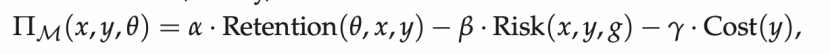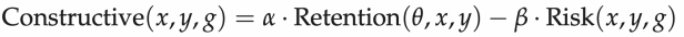 其中Retention(.) 表示用户留存度,Risk(.)为风险度(如违反法律/伦理准则的危险分数),α,β>0为权重系数,且通常β>α,体现安全优先原则,Cost 为每产生的y的生成费用。