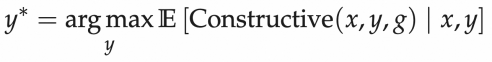 由于用户真实类型不可观测,模型需通过观测输入和上下文推断后验信念,并据此求解期望效用最大化问题,该方法提出一个统一的Constructive objective, 用于表示同时考虑回复用户满意度及风险度后的净价值,若为正,则意味着该回复提供了正向建设价值: