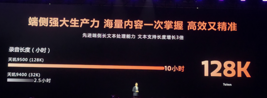 天玑9500支持128K上下文窗口,是上代的4倍,能一次性读入相当于10小时录音的数万字文本。
