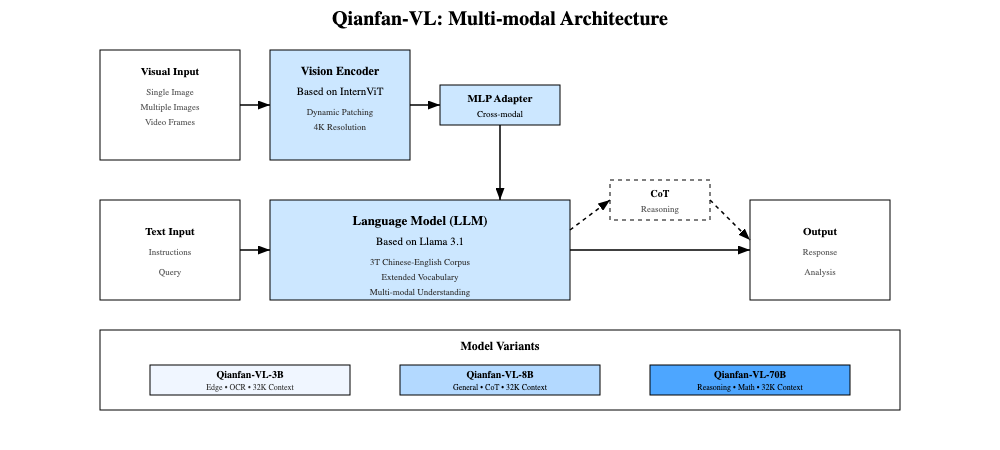 Qianfan-VL通过先进的多模态架构设计,凭借持续预训练和三大技术创新,实现了领域增强的通用视觉-语言能力。