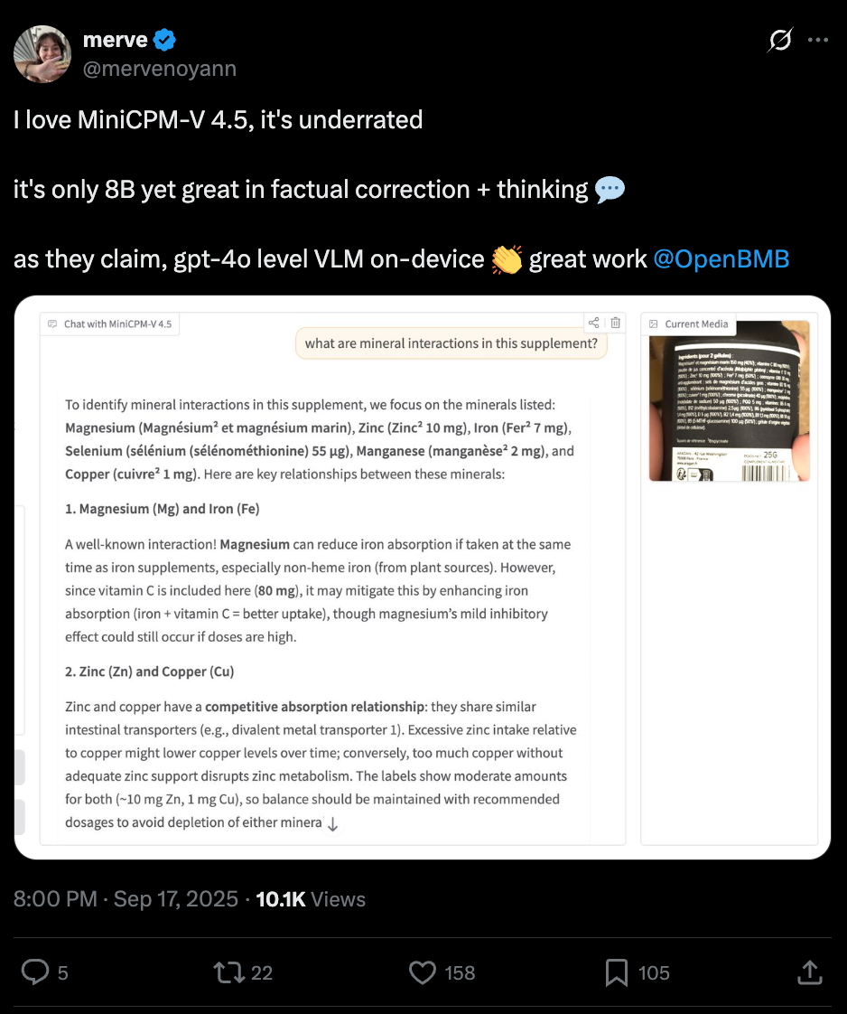 截至目前,MiniCPM-V 4.5在HuggingFace、ModelScope两大平台合计下载量超22万。