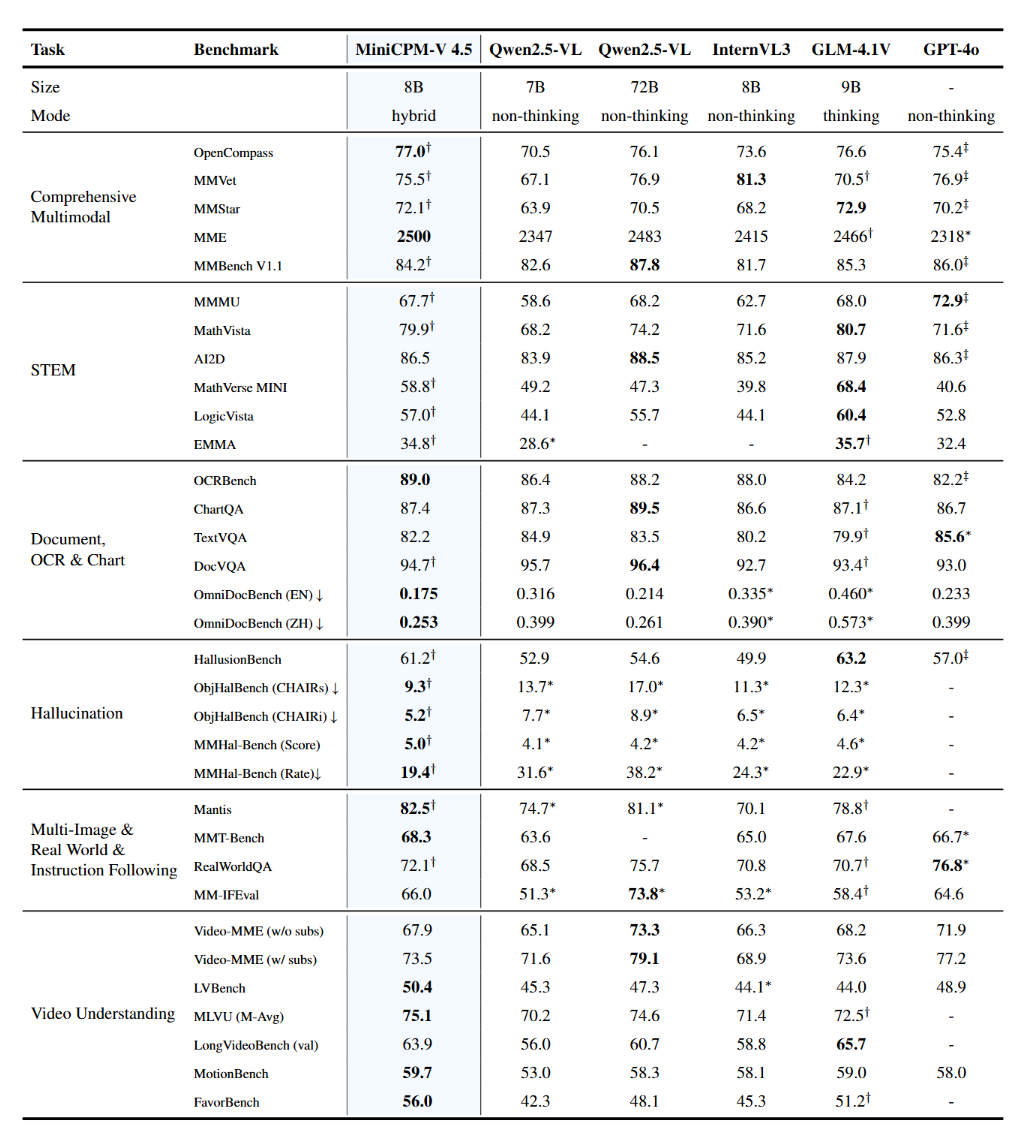 技术报告地址:https://github.com/OpenBMB/MiniCPM-V/blob/main/docs/MiniCPM_V_4_5_Technical_Report.pdf