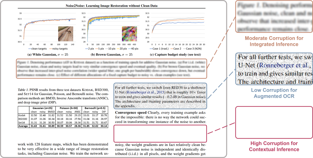高度损坏(知识学习):文字被完全抹除,模型被强制依赖上下文图表和文字以及模型内部知识来重建原文,从而实现真正的文档级理解。