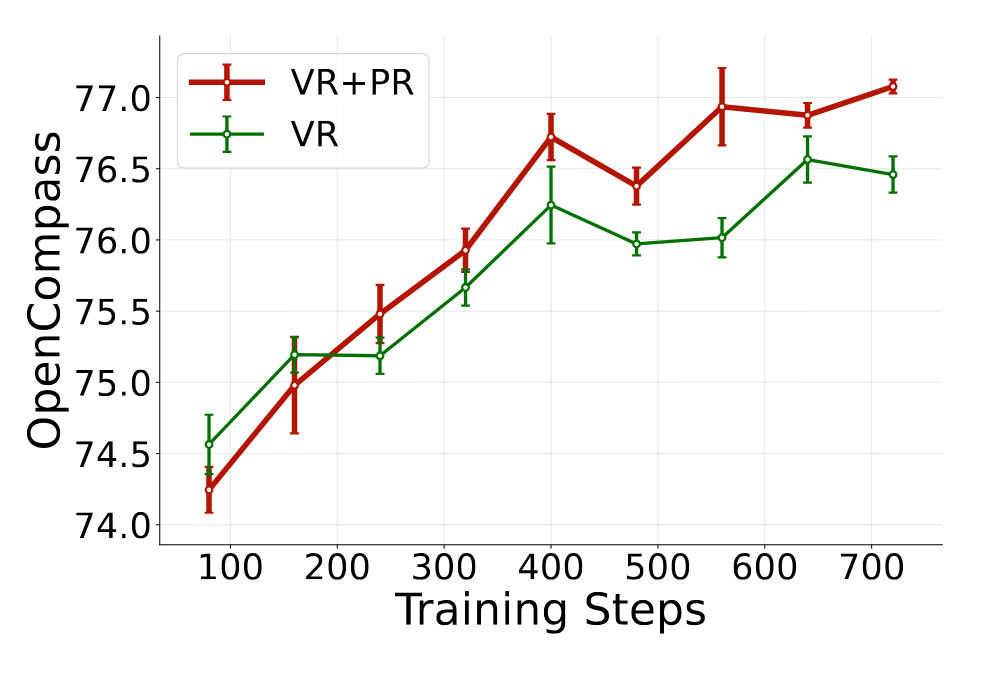 随着训练步数增加,结合PR训练相比常规训练方法的优势会逐渐扩大.