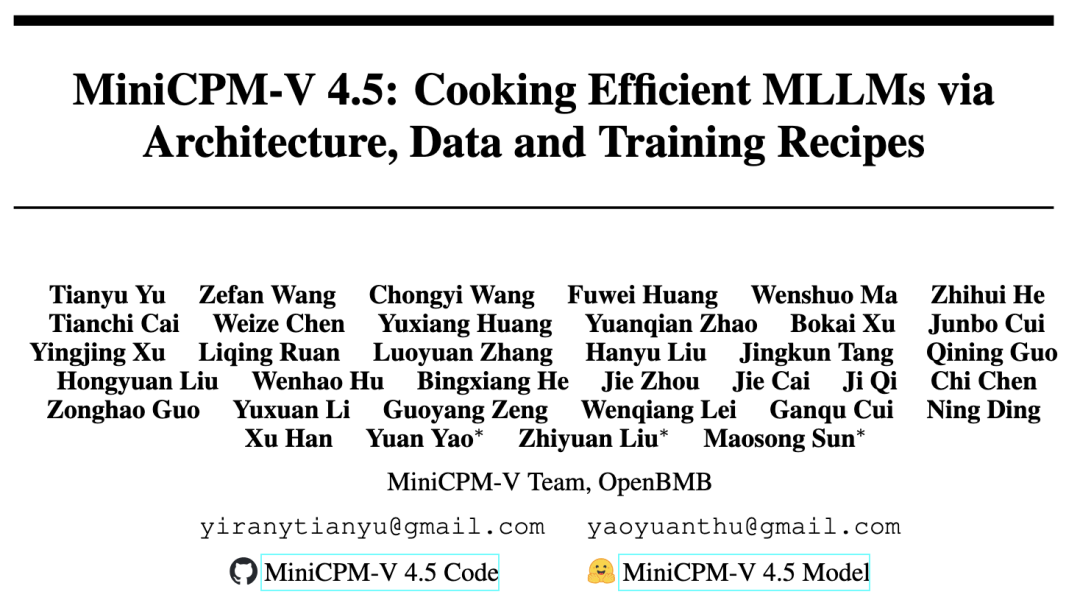 行业首个具备“高刷”视频理解能力的多模态模型MiniCPM-V 4.5的技术报告正式发布!