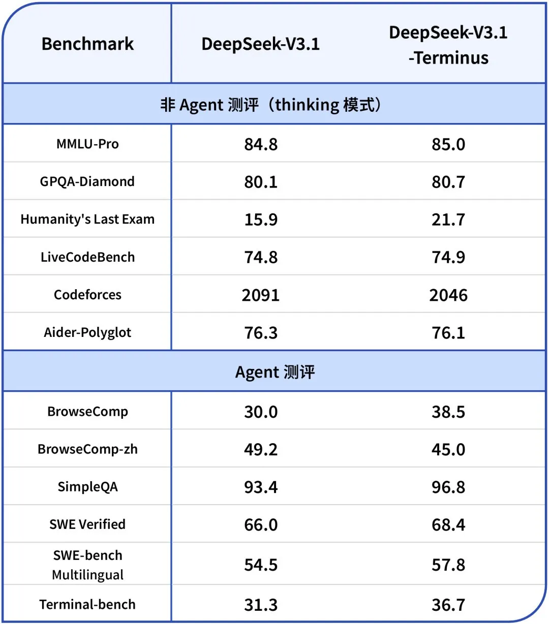 DeepSeek-V3.1刚刚更新至DeepSeek-V3.1-Terminus版本。