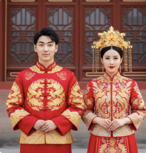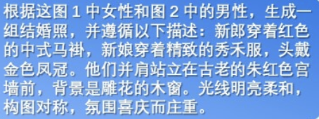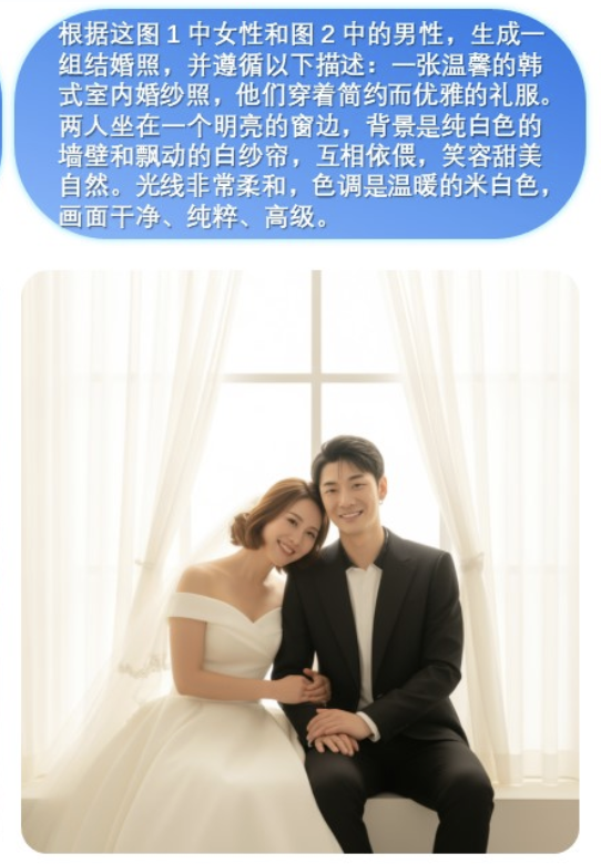 先看一个“人物+人物”生成结婚照的例子。