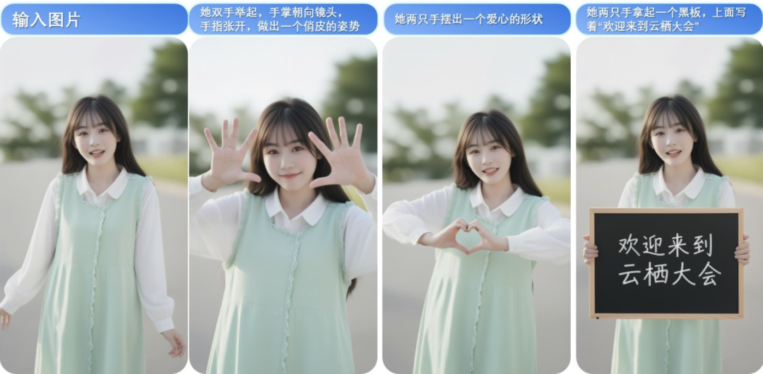 还能进行不同的姿势编辑,俏皮、比心、举黑板都是不在话下。