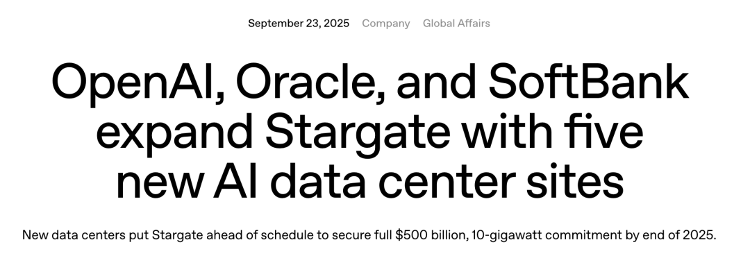 当然,OpenAI与甲骨文的合作已经是轻车熟路,得克萨斯州阿比林的数据中心就是两家合建,并且七月又达成协议,决定对该数据中心进行扩建,开发高达4.5GW的数据中心容量。