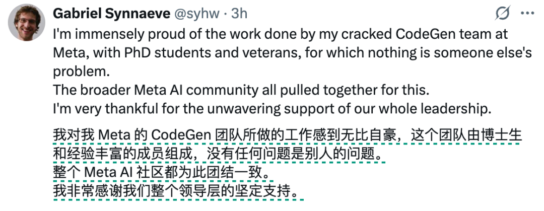 整个Meta AI社区都为此共同努力。非常感谢整个领导层始终如一的支持。