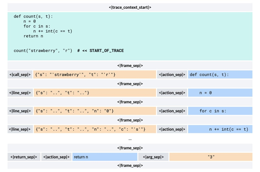 Meta FAIR专攻AI与代码生成的资深研究科学家,也是CWM的资深核心贡献者Gabriel Synnaeve在𝕏上分享了CWM追踪执行计算”strawberry”中”r”个数的代码的例子: