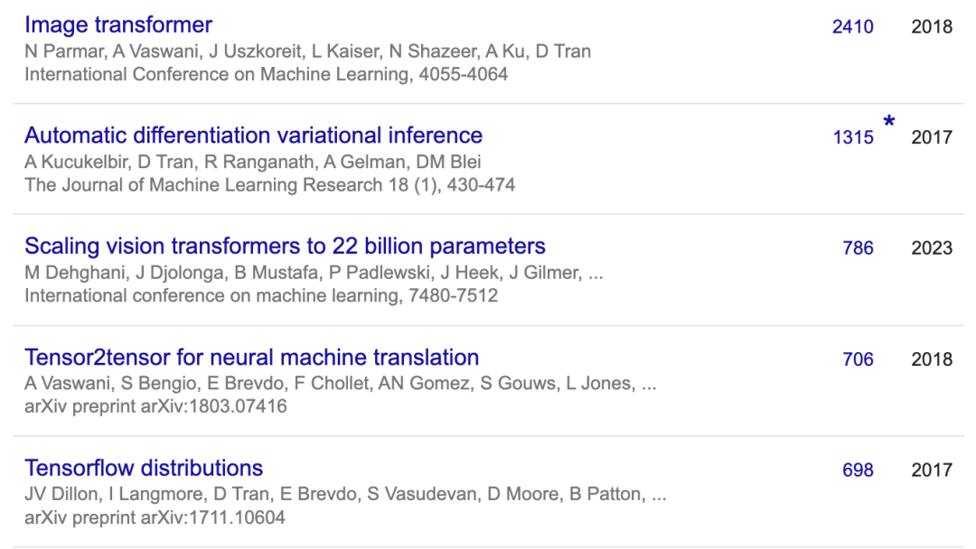 除了Gemini,Tran早期还参与了TensorFlow、Tensor2Tensor、Image Transformer、Vision Transformer等多个重量级项目,这些论文在谷歌学术上都有不错的影响力。