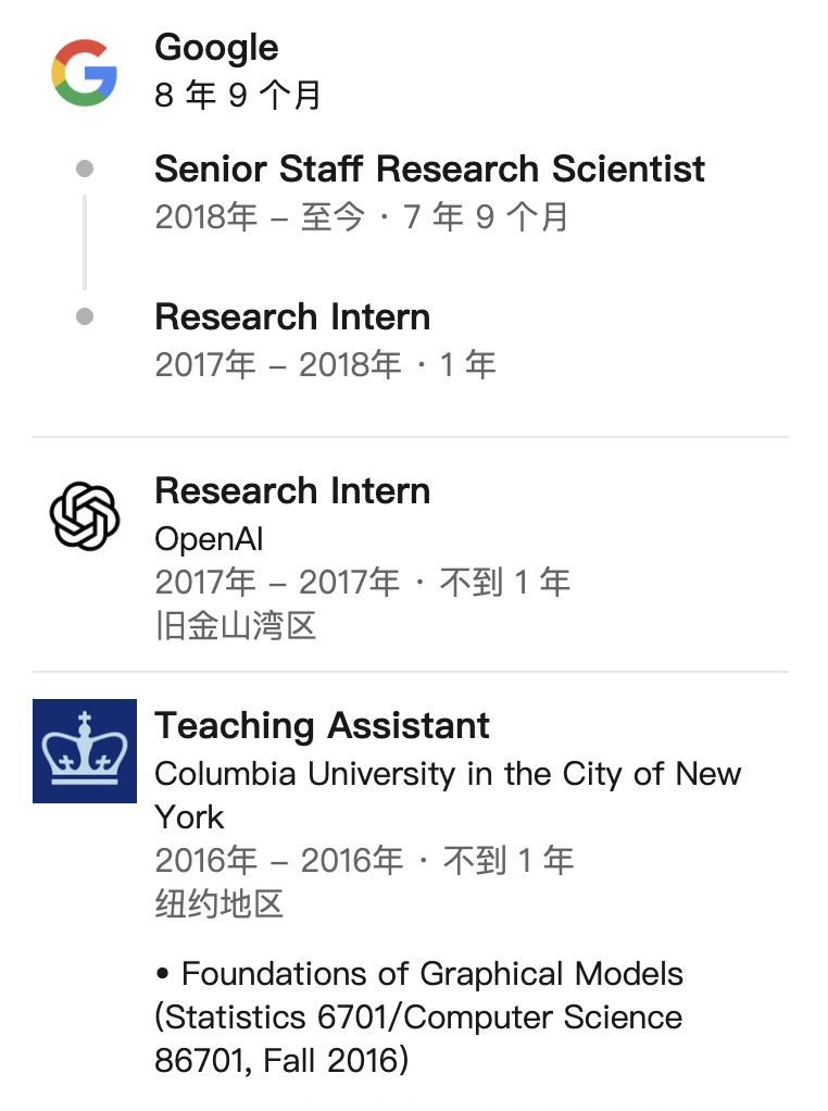 在加入谷歌之前,Tran还曾在OpenAI有过短期实习,他将这段经历称为博士项目休假的「伪博士后」时期。